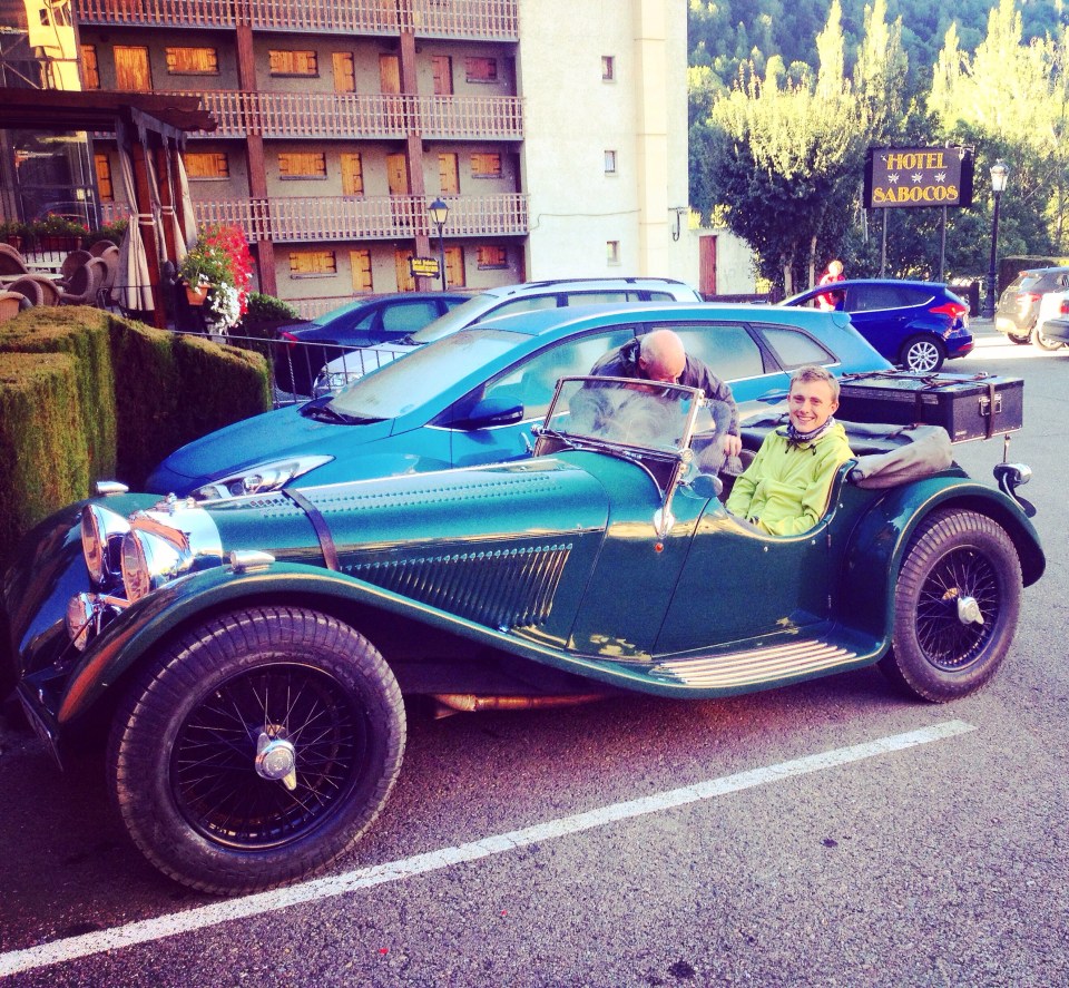 Dan hitching a ride in this beauty. A 1948 Jaguar 😍