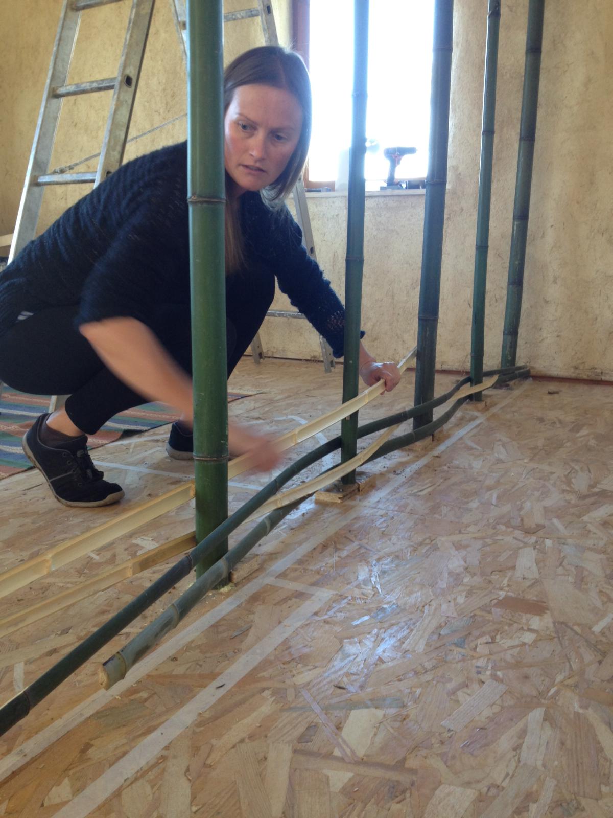 In order to use the bamboo it is necessary to split it into useable sections. To do this we employed the use of good old YouTube and a Japanese master carpenter, who humbly showed us the way. The finished result was strips of bamboo suitable for both the structure of the walls and the infill.