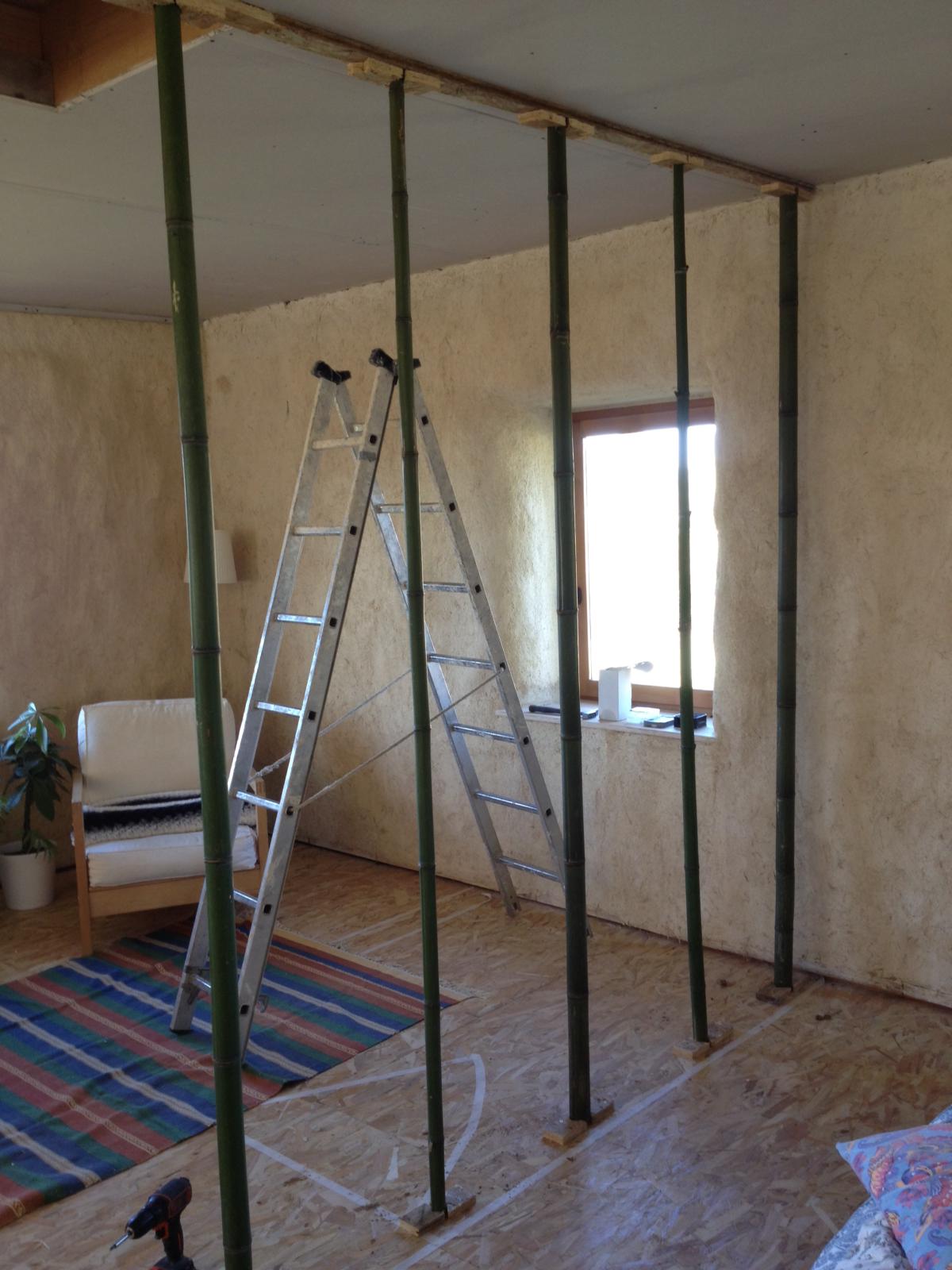 Most of the structure was left up for a long time in the house prior to smooshing on the daub, so it had plenty of time to season, often splitting with the sound of an almighty gun shot in the deepest quiet of the night! The entirety of our interior floor plan was created using bamboo in this way and quite honestly I absolutely loved the look of it like this, just as bamboo. I could have lived with it like that forever, were it not necessary to have some privacy and sound proofing for working and the toilet of course…