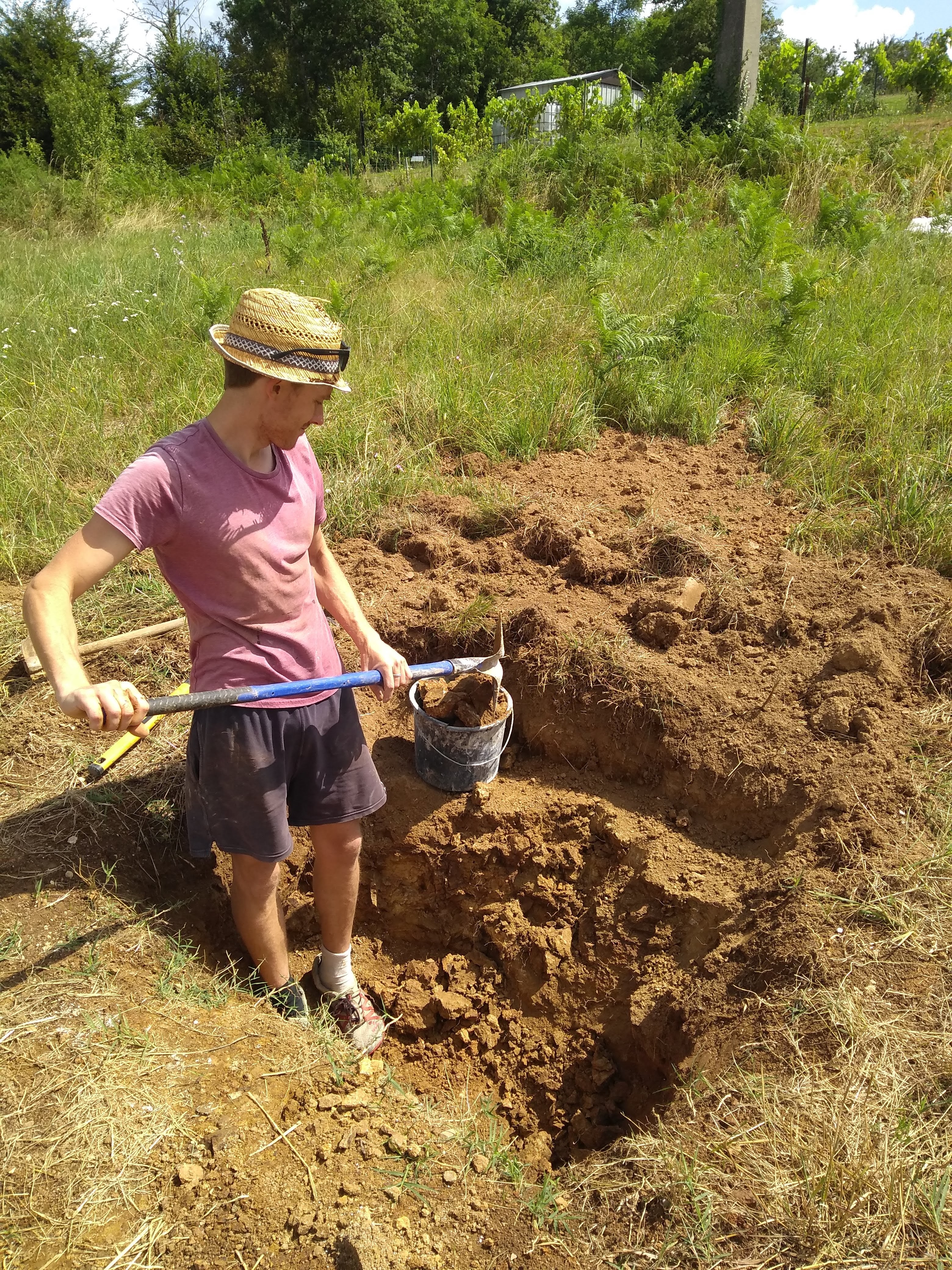 We chose to use wattle and daub to ensure the interior, dividing walls were in keeping with the exterior walls in terms of wobbilness. Yes, technical I know. The four straw loading-bearing walls have a remarkable softness of shape to them especially once finished off with three layers of lime wash. I was keen to emulate that with the dividing walls and wattle and daub seemed to hold the answer. After reading through a small book on wattle and daub the technique seemed simple enough and achievable. The soil on our land is high in clay content, and in some areas, there is even what might be called a ‘pocket’. Although I think this term is mostly reserved for gold mining?! We didn’t strike gold, but pure yummy clay is perhaps arguably more useful.