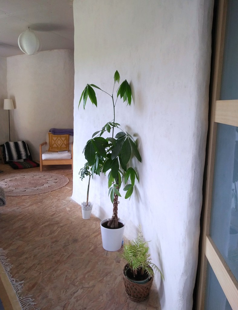 It will come as no surprise that the interior of our straw bale house has taken much longer to complete than the superstructure. Many, many friendly advisors told us this would be the case, and once we embarked upon the wattle and daub train I realised they were astoundingly accurate in their premonition! Progress also slowed markedly when the sofa made an appearance…